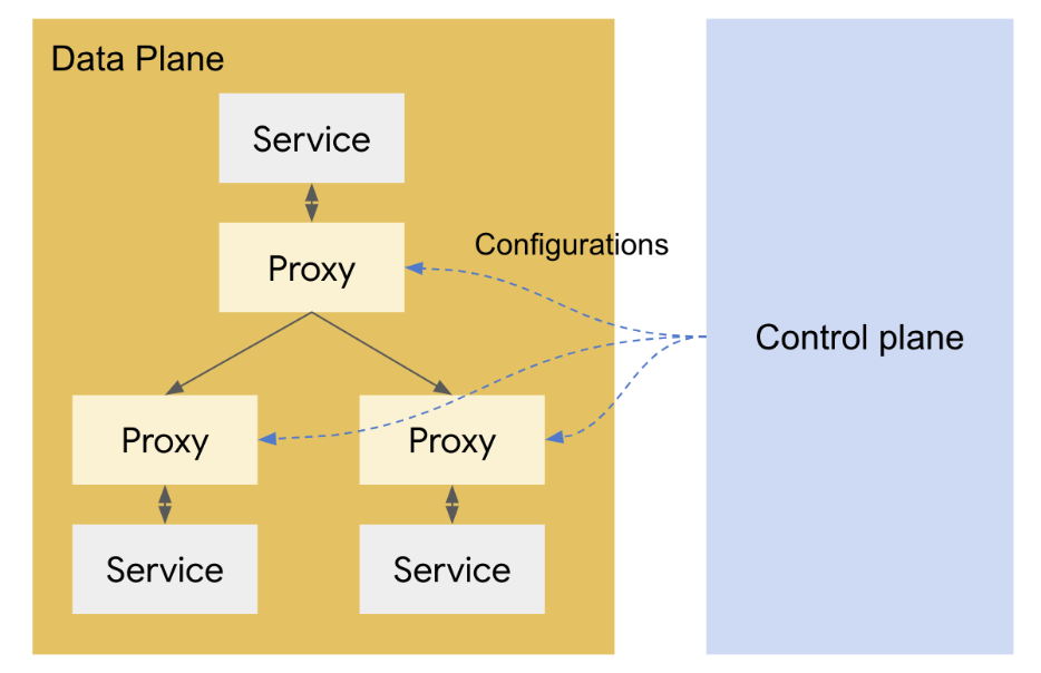 - 프록시를 사용하여 서비스 또는 마이크로서비스 간의 서비스 간 통신을 용이하게 하기 위한 전용 인프라 계층