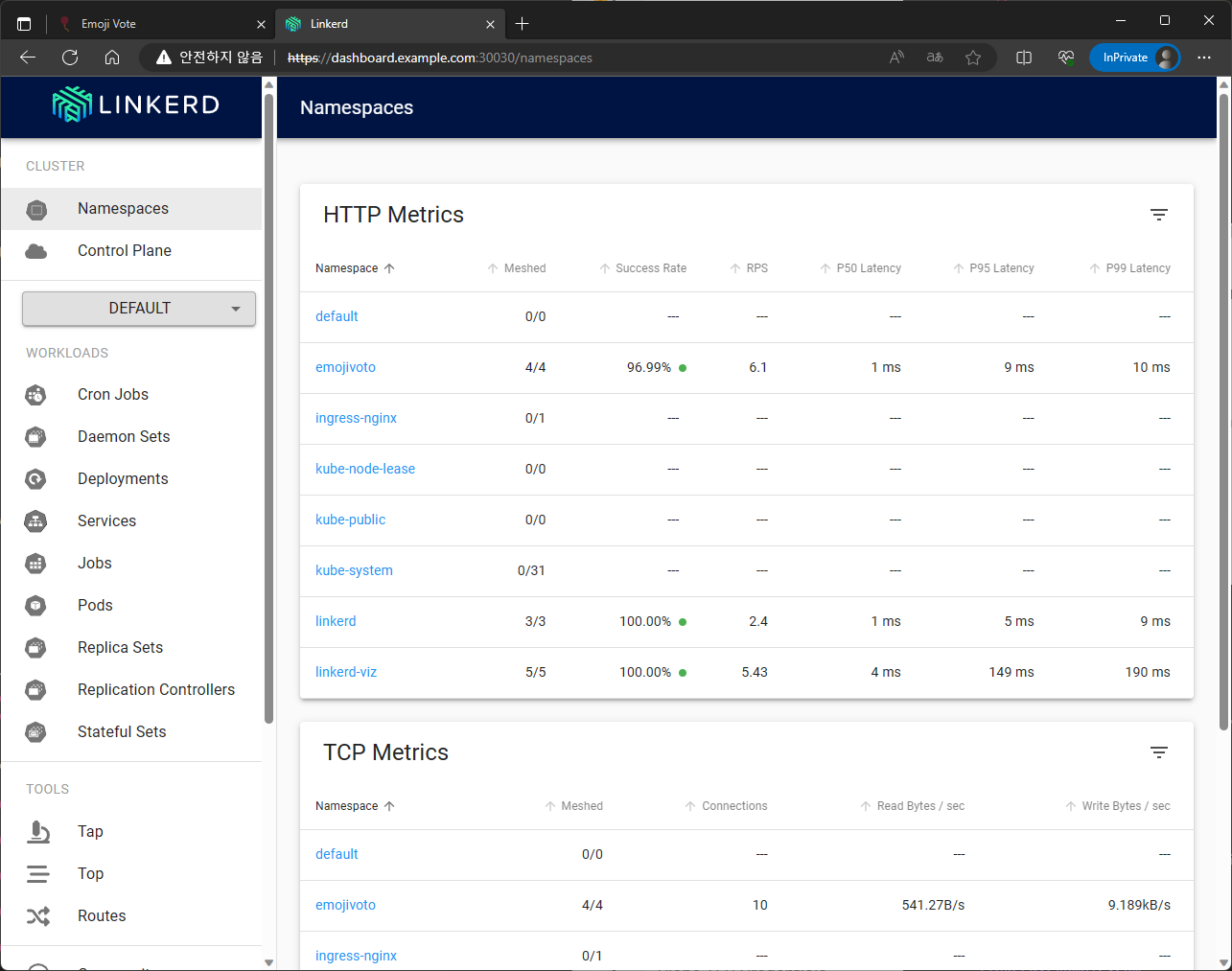 $ curl --proto '=https' --tlsv1.2 -sSfL https://run.linkerd.io/emojivoto.yml \